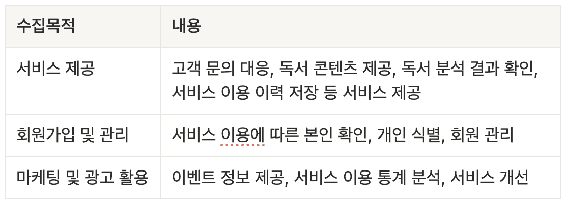 “회사”는 서비스 제공을 위해 다음과 같은 개인정보를 수집합니다.